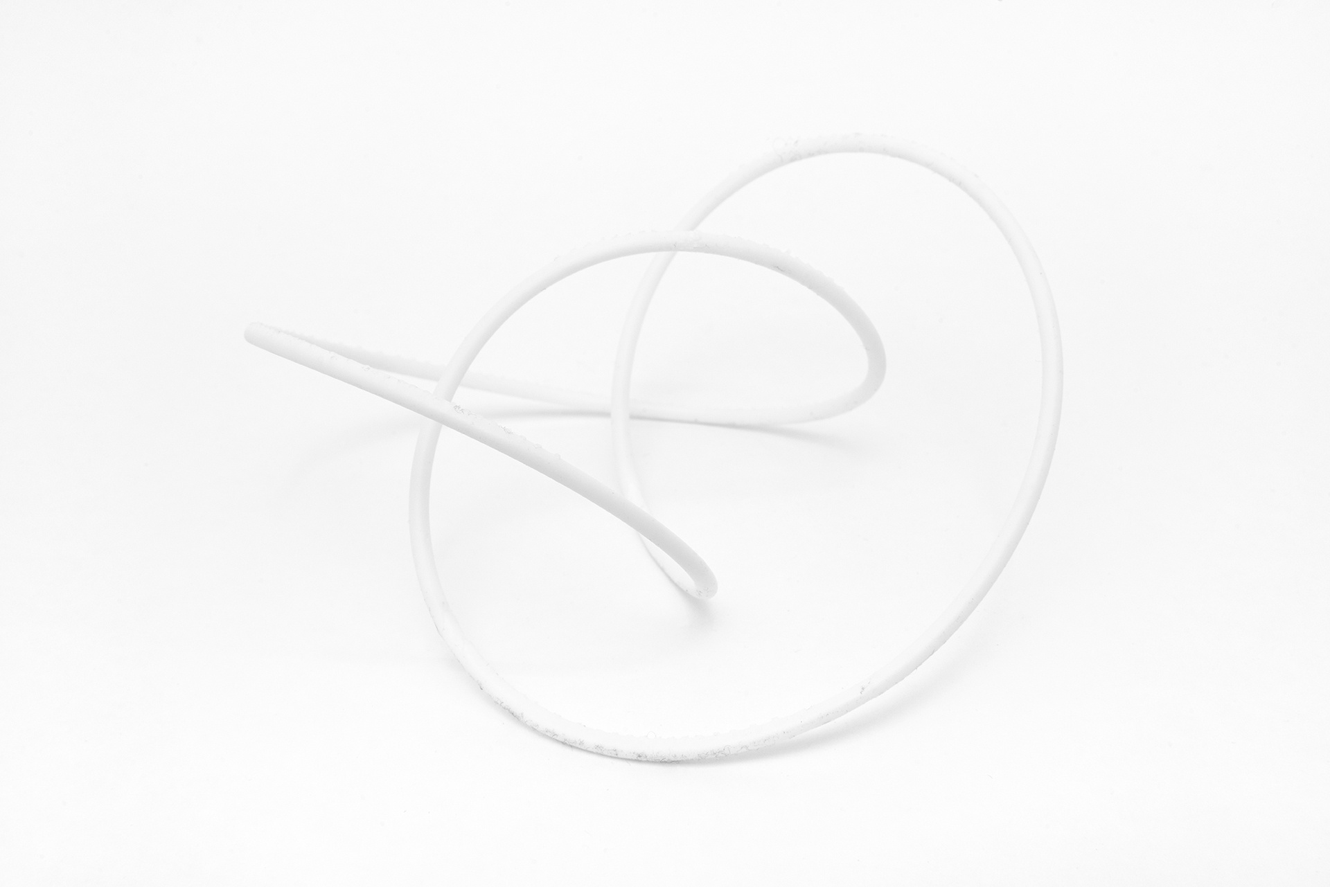 The Knot Studies research explores three-dimensional realizations of mathematical knots through 3D printing. The investigation translates topological knot structures into physical forms, examining how abstract mathematical curves manifest as tangible objects. The study addresses various knot types including trefoil knots, figure-eight knots, and more complex configurations. Each knot presents different geometric challenges for physical realization. The research tests how knot theory principles translate to printable geometries and which representations best communicate topological properties. The investigation examines tube thickness, curve smoothness, and spatial positioning for optimal visualization of knot crossings and structure. The work establishes methods for converting mathematical knot descriptions into fabricable forms while maintaining topological accuracy. Physical models make abstract knot theory concepts accessible through direct observation.
