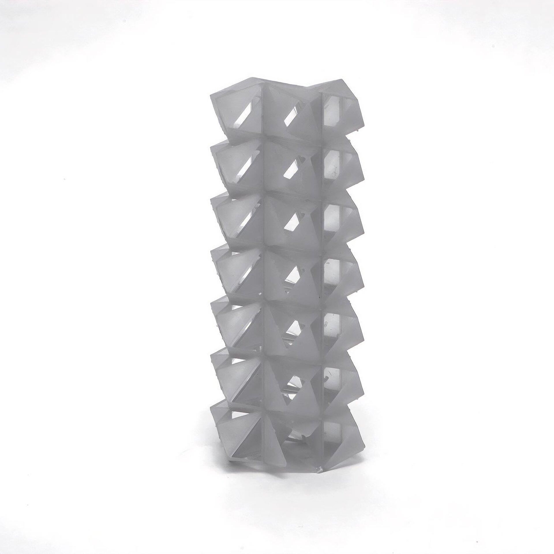 Various stacking patterns and their geometric properties are tested. Ring-based towers show how a single modular element adapts to vertical architectural forms while preserving the SuperCube's interlocking logic. Principles for translating horizontal ring geometry into vertical spatial organization emerge from the configurations.